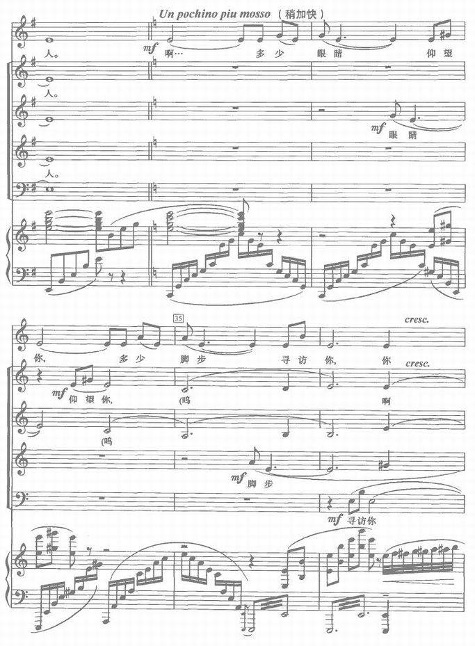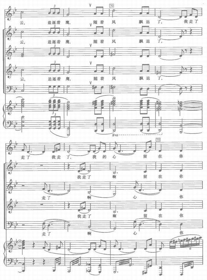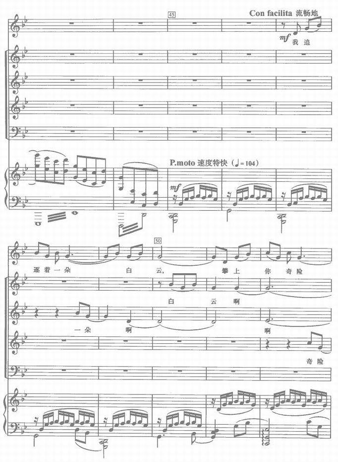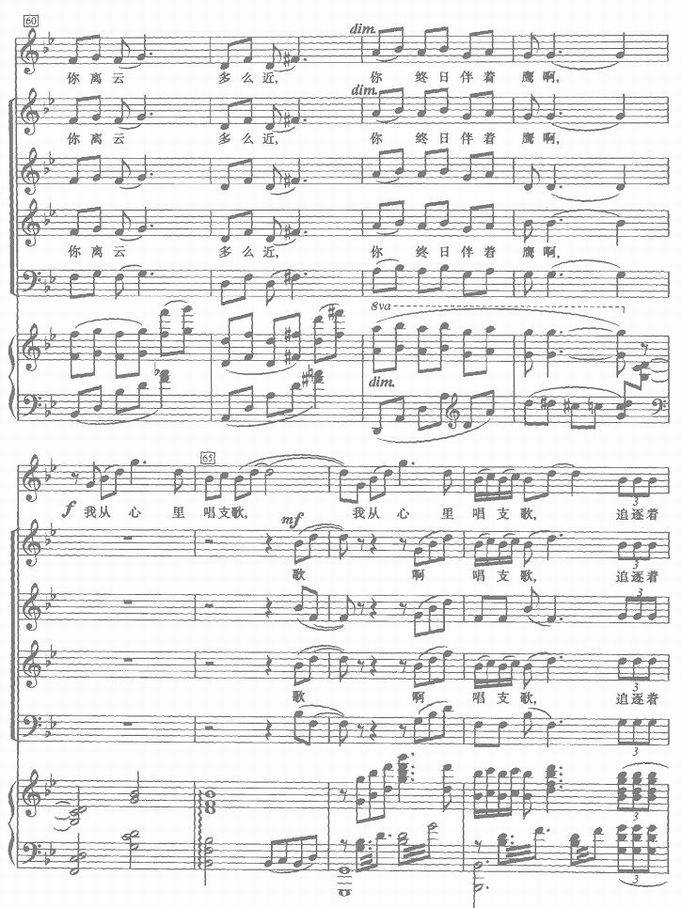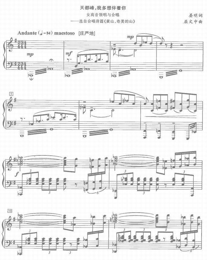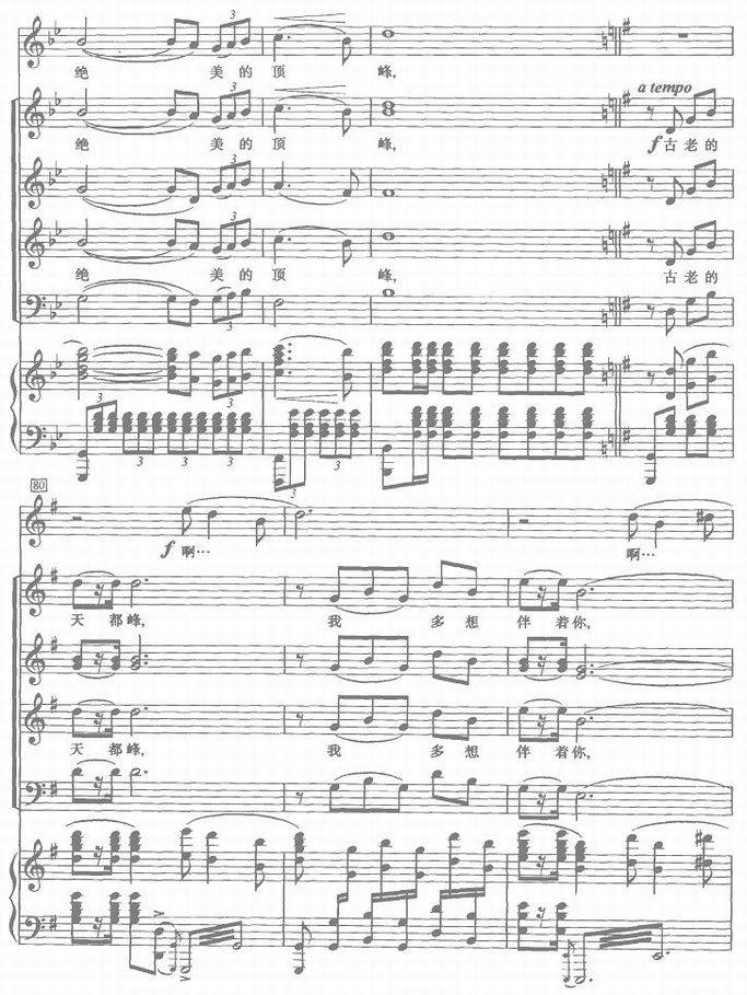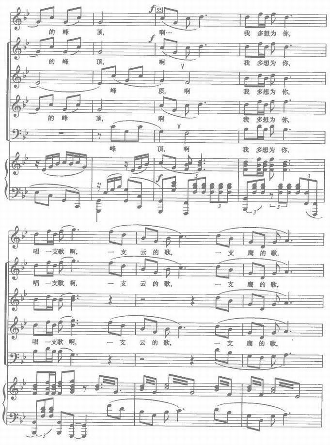 >> 天都峰,我多想伴着你-女高音领唱与合唱(线谱带钢琴伴奏)