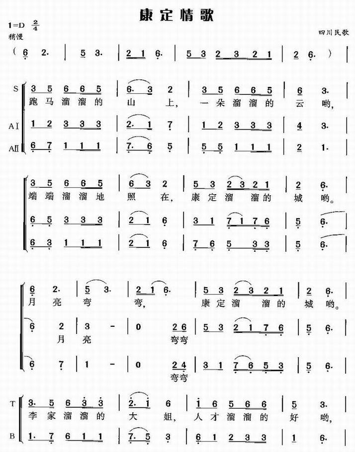 >> 康定情歌-四川民歌(合唱简谱)