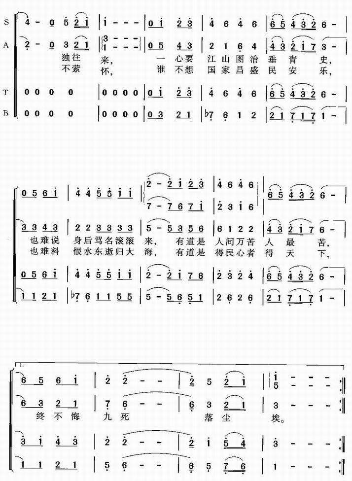 >> 得民心者得天下-《雍正王朝》主题歌(领唱与合唱简谱)