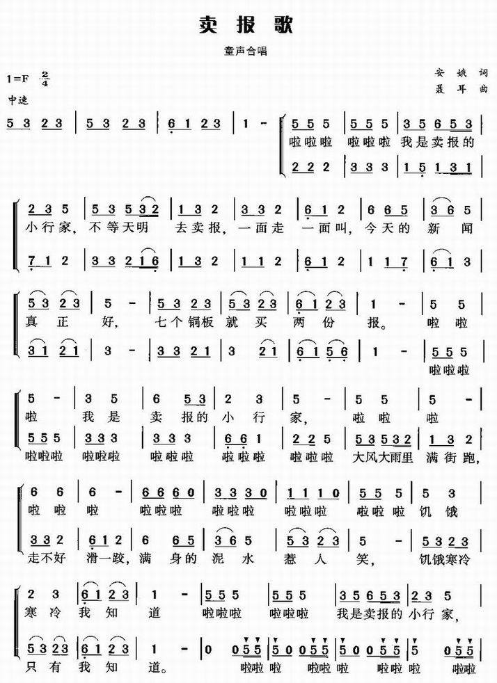 卖报歌-少儿歌曲(简谱+线谱)