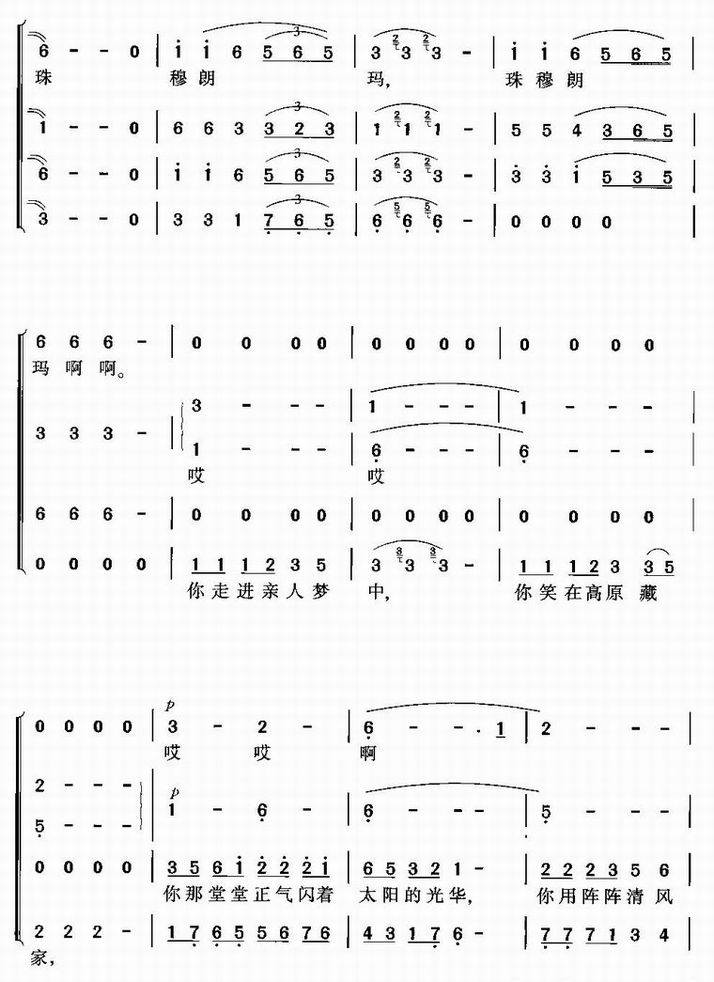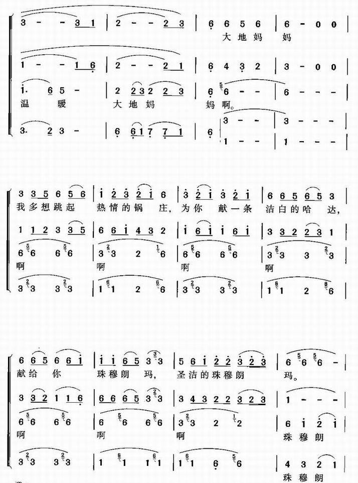 >> 珠穆朗玛-混声合唱(合唱简谱)