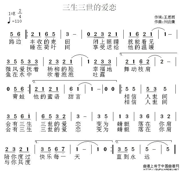 >> 三生三世的爱恋-王思雨词 刘云康曲(简谱)