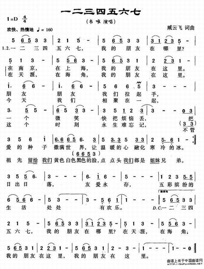 >> 一二三四五六七-韦唯(简谱)