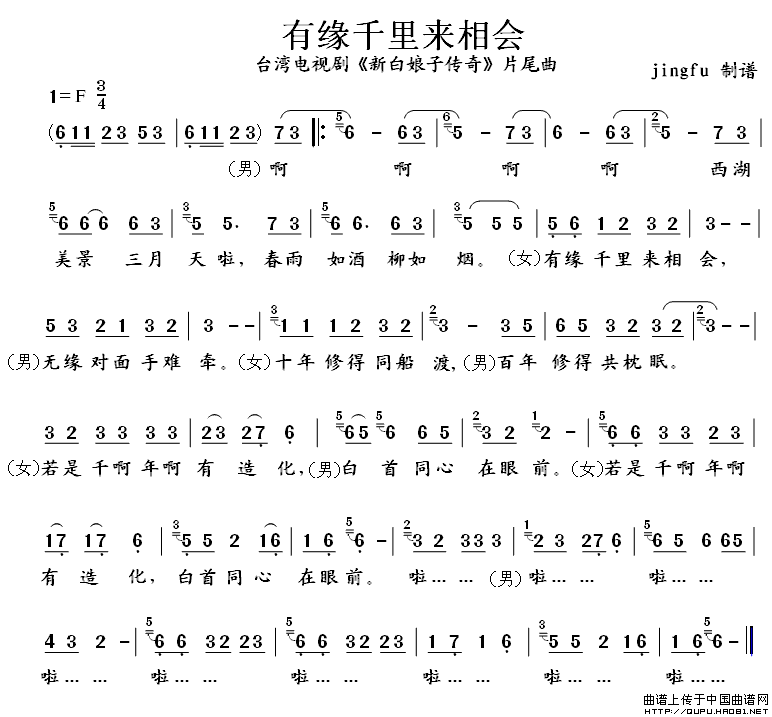 有缘千里来相会-《新白娘子传奇》片尾曲(简谱)