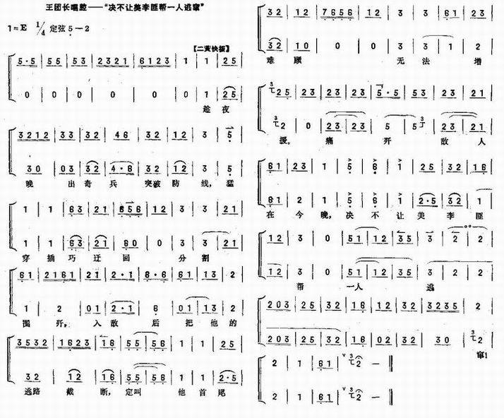 >> 决不让美李匪帮一人逃窜-王团长唱腔(京剧简谱_琴谱)