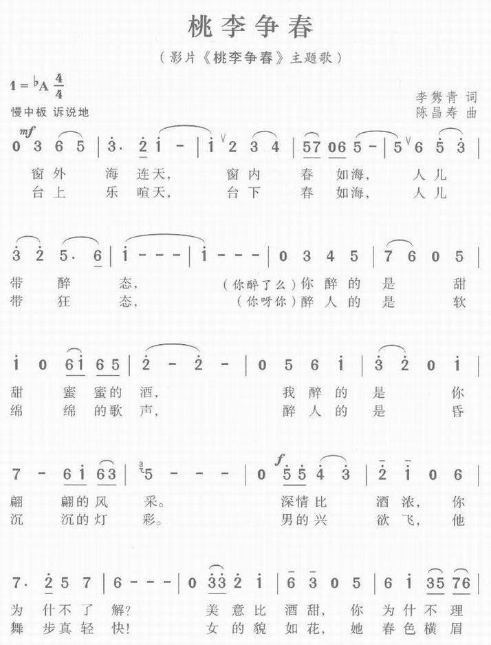 >> 桃李争春-影片《桃李争春》主题歌(简谱)