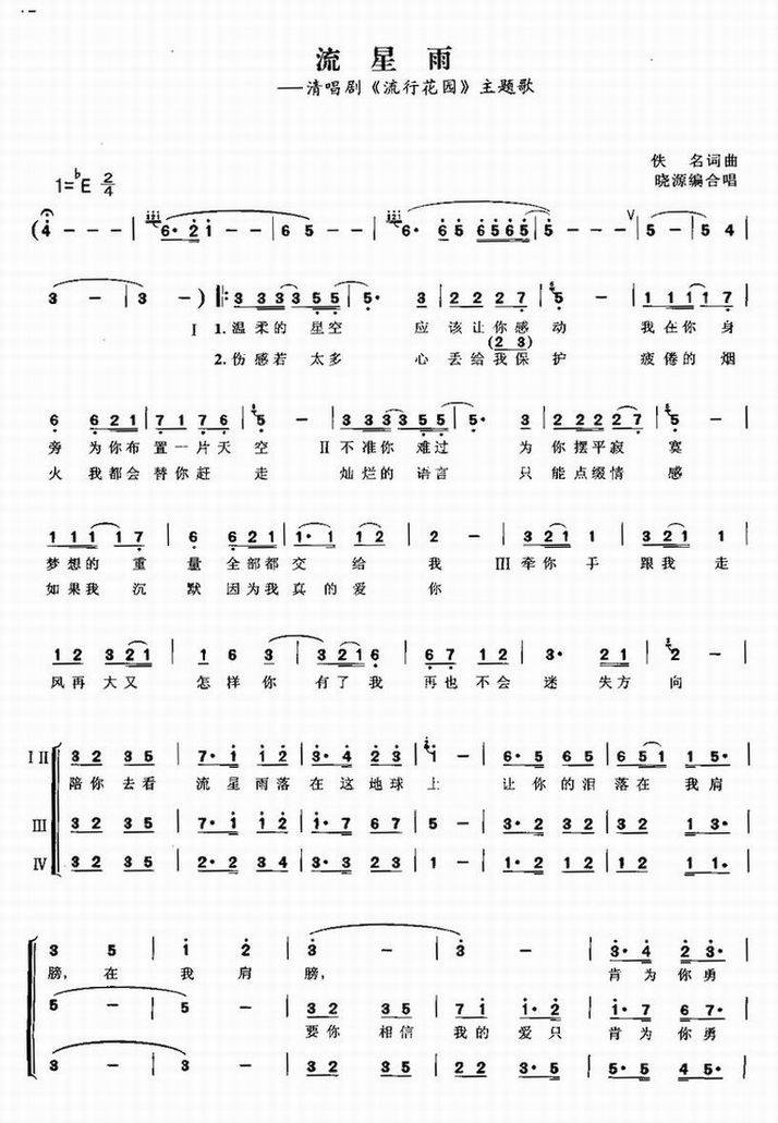 >> 流星雨-清唱剧《流行花园》主题歌(合唱简谱)