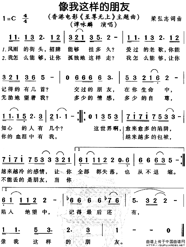 像我这样的朋友-谭咏麟(电影《至尊无上》主题曲简谱)