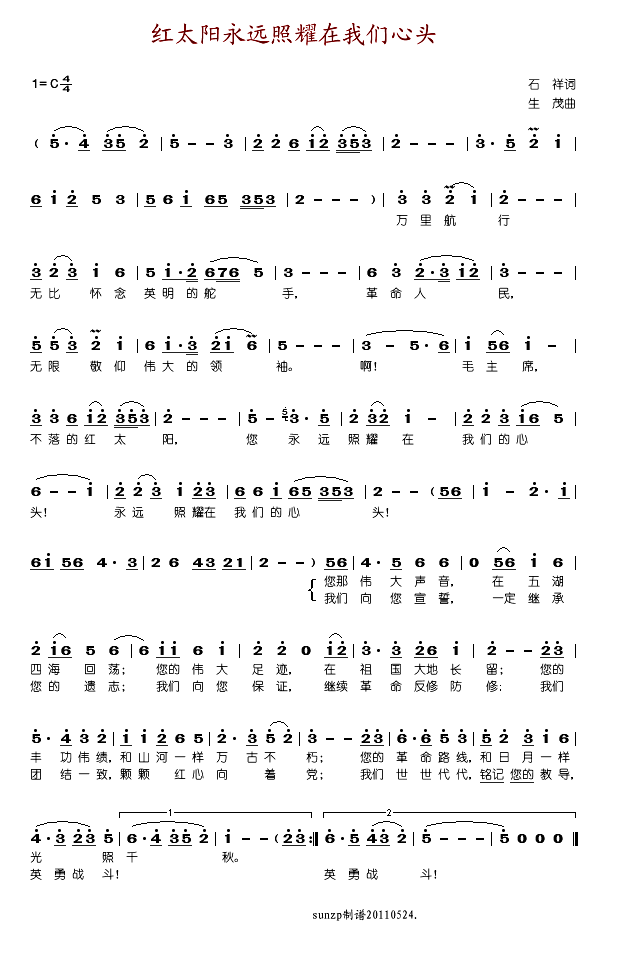 红太阳永远照耀在我们心头-石祥词 生茂曲(简谱)