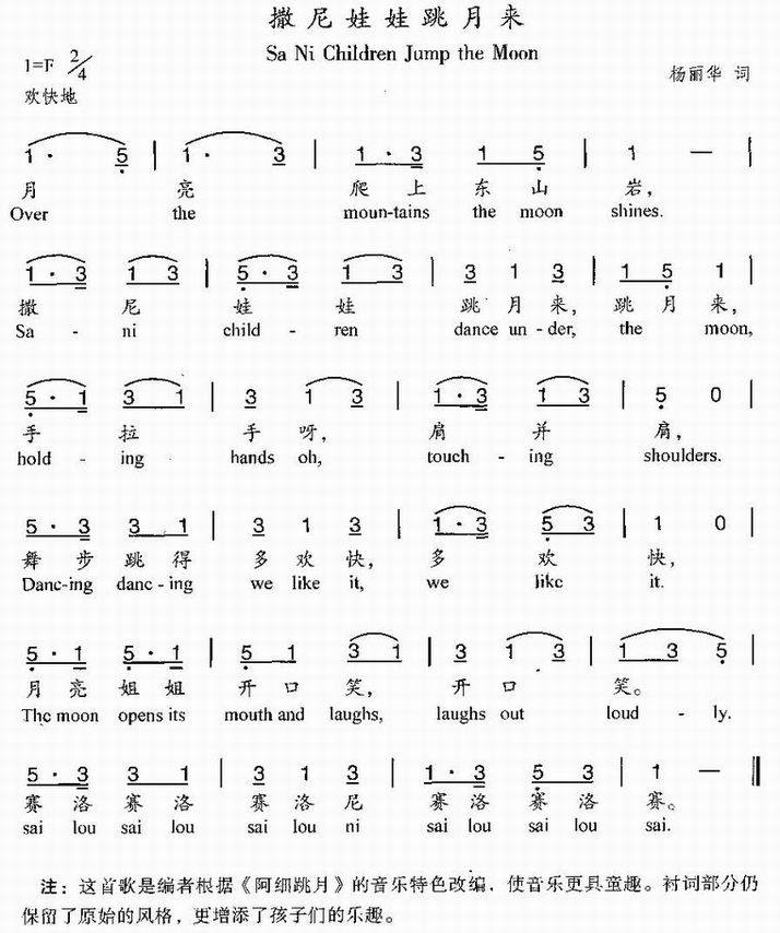 >> 撒尼娃娃跳月来-少儿歌曲(简谱)
