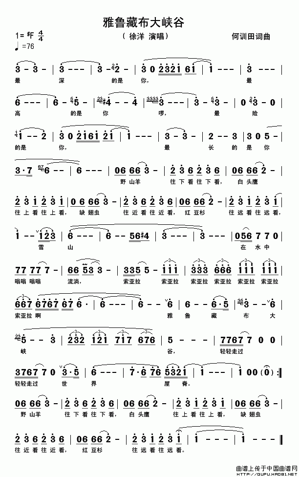 >> 雅鲁藏布大峡谷-徐洋(简谱)