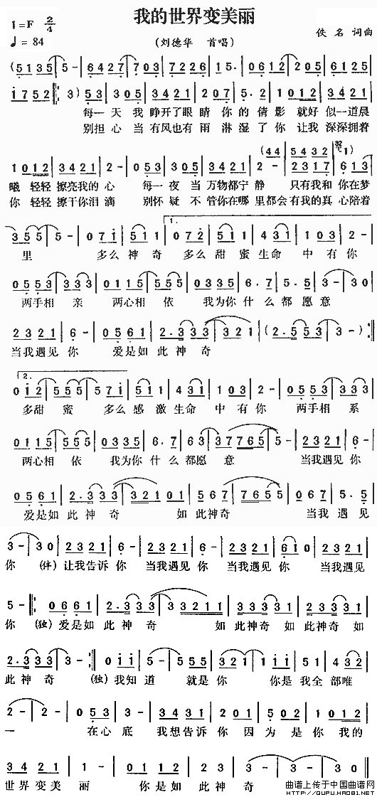 >> 我的世界变美丽-刘德华(简谱)