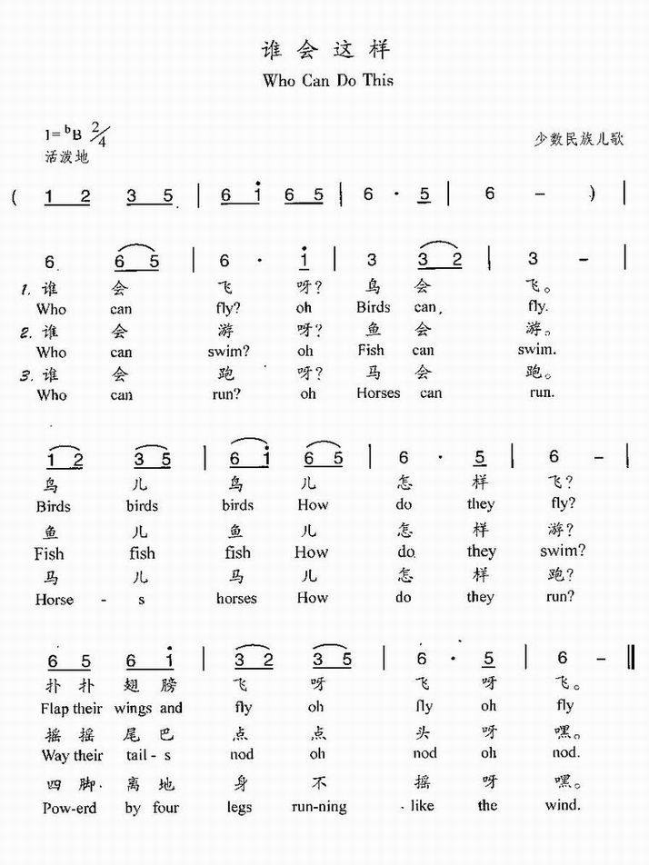 小鸟小鸟-少儿歌曲(简谱+线谱)