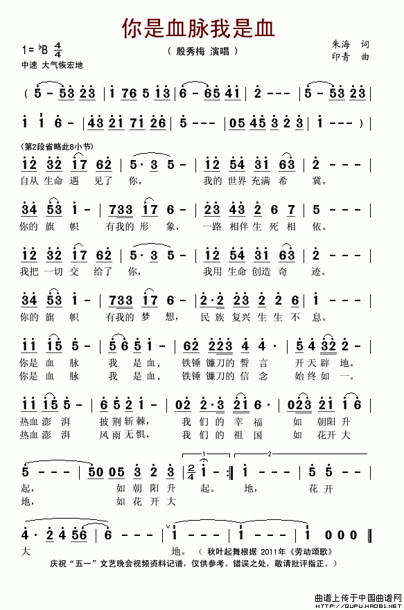 >> 你是血脉我是血-殷秀梅(简谱)