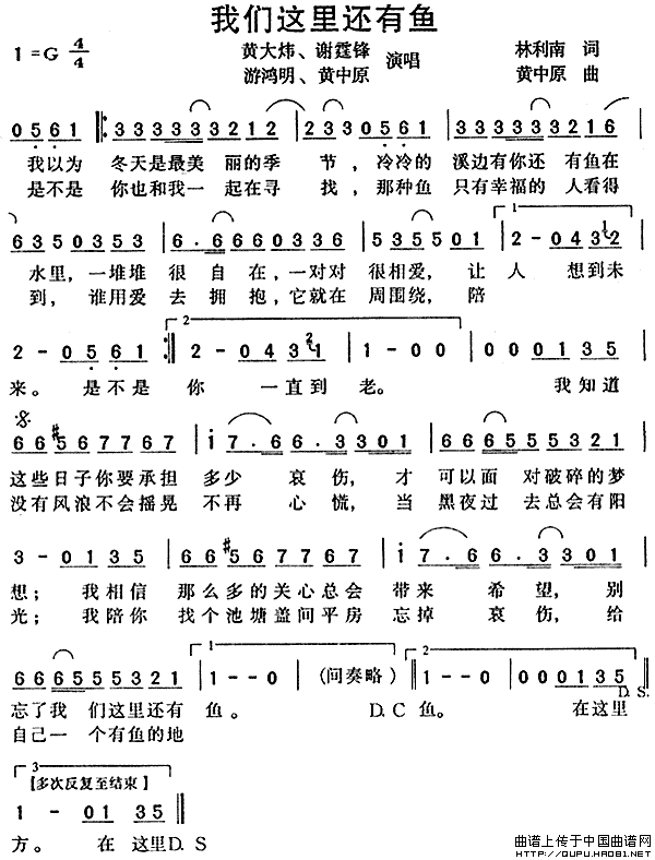 >> 我们这里还有鱼-黄大炜 谢霆锋 游鸿明 黄中原(简谱)