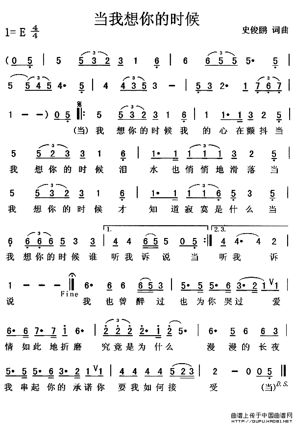 当我想你的时候-汪峰(简谱)