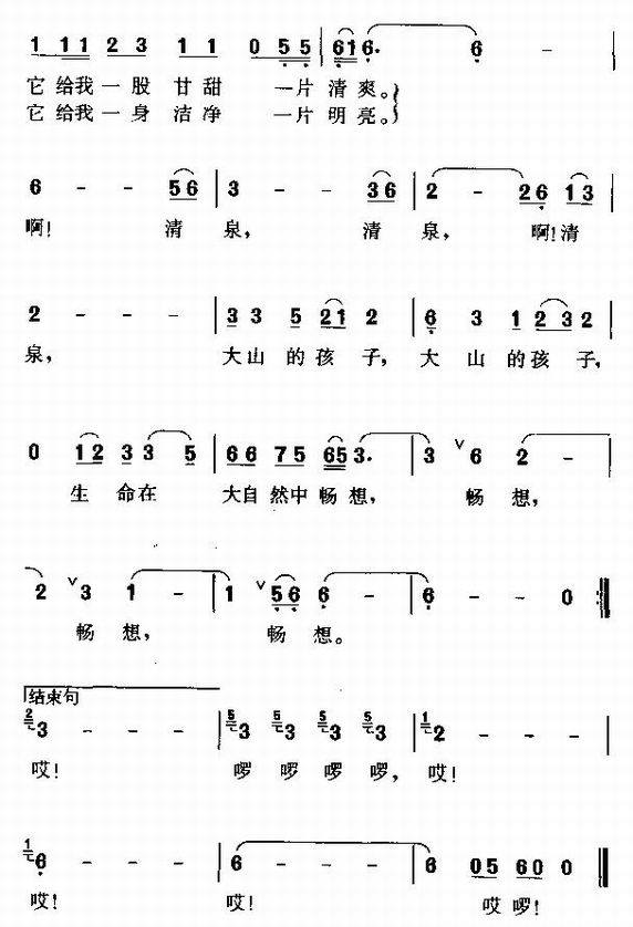啊,清泉-少儿歌曲(简谱)