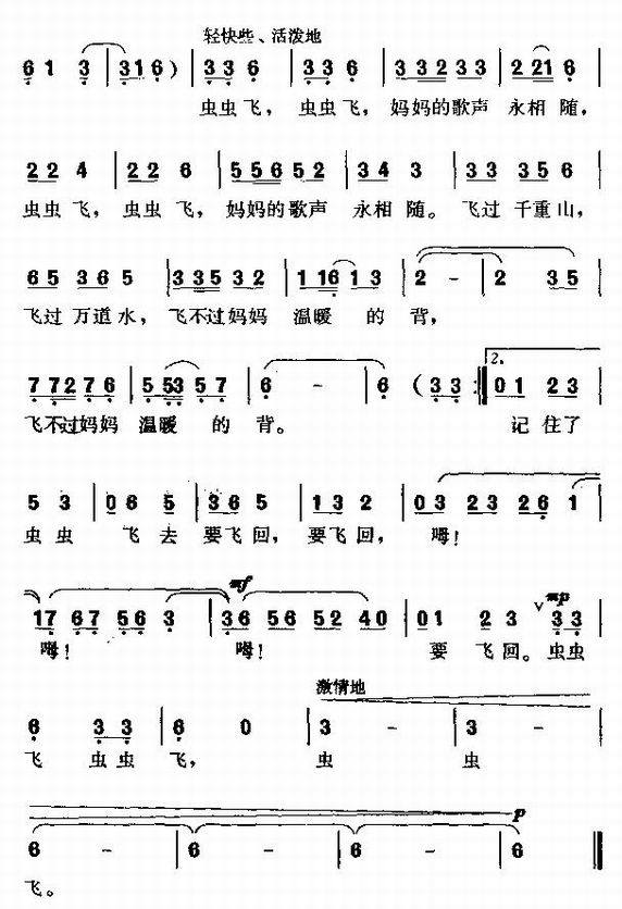 虫虫飞-少儿歌曲(简谱)