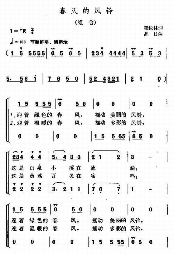 >> 春天的风铃-少儿歌曲(二声部简谱)