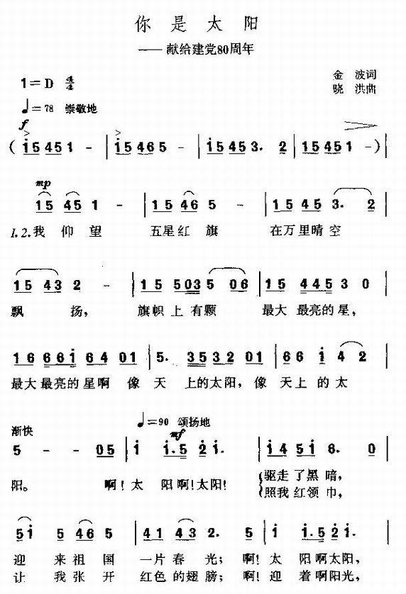你是太阳-少儿歌曲(简谱)