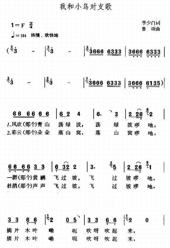 >> 我和小鸟对支歌-少儿歌曲(简谱)