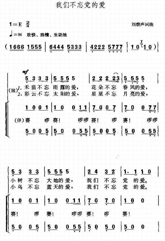 我们不忘党的爱-少儿歌曲(简谱)