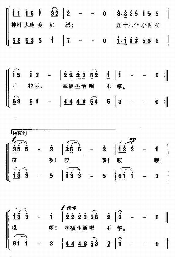 五十六个小朋友手拉手-少儿歌曲(简谱)