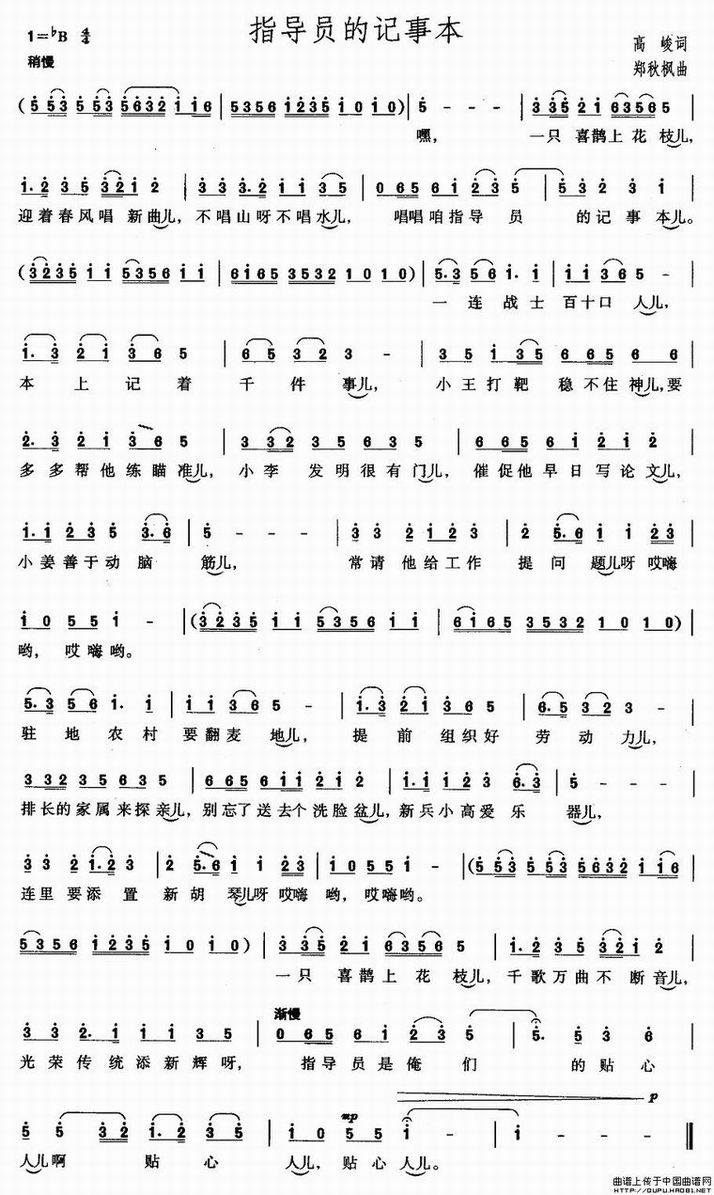 >> 指导员的记事本-高峻词 郑秋枫曲(简谱)