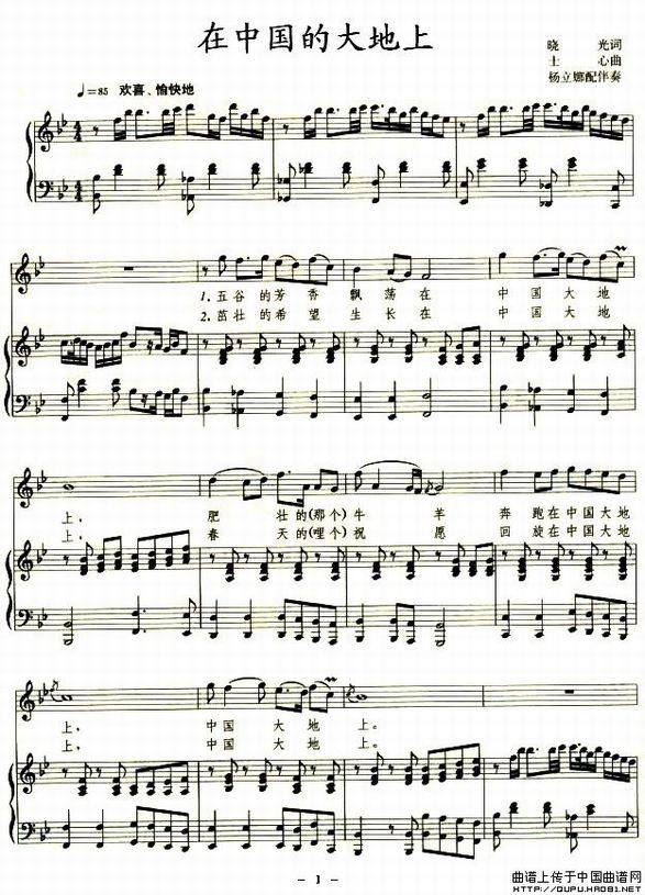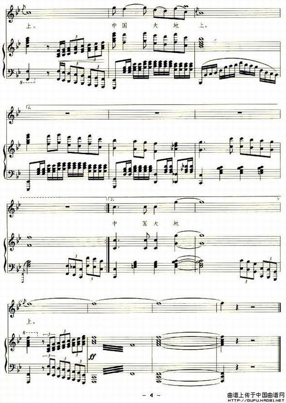 >> 在中国大地上-钢琴伴奏谱(钢琴谱_五线谱)