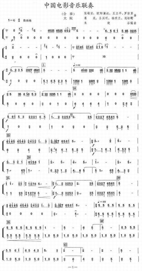 >> 中国电影音乐联奏-民乐合奏(大阮分谱)