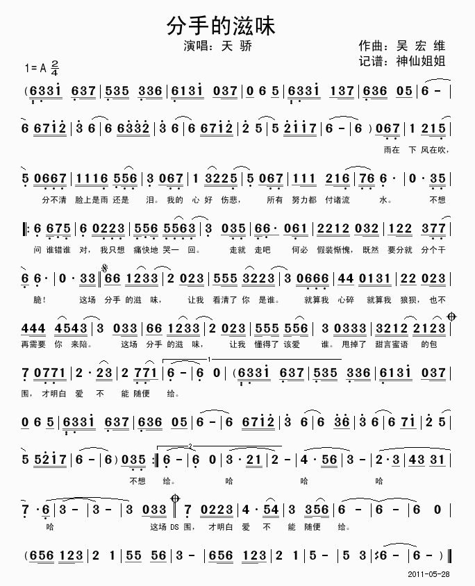 [04:06.35]分手的滋味--天骄 词曲:吴宏维