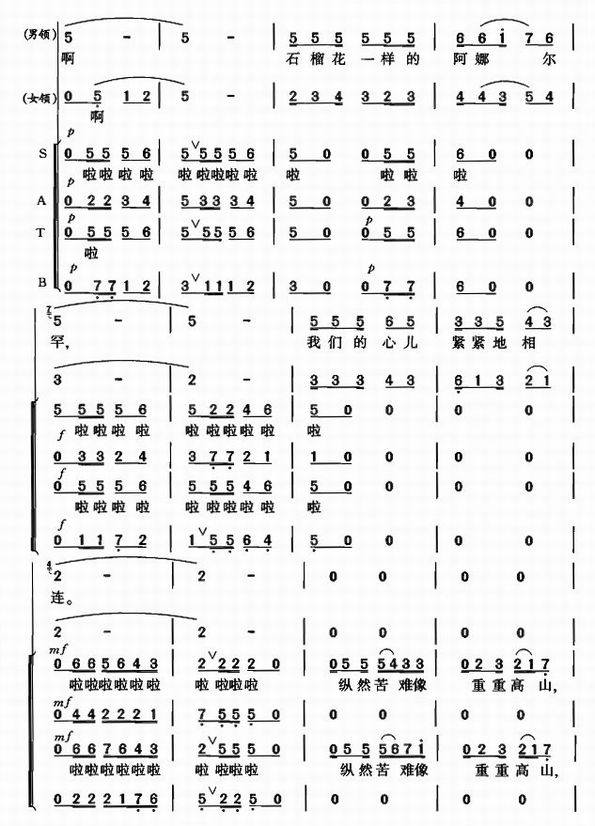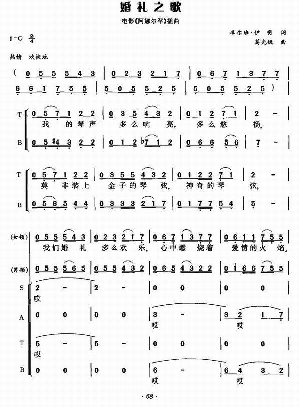 婚礼之歌-电影《阿娜尔罕》插曲(合唱简谱)