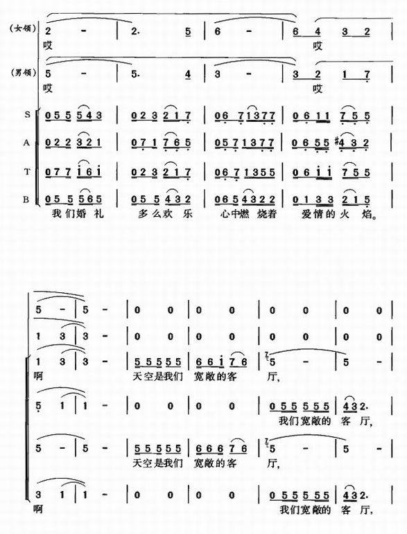 >> 婚礼之歌-电影《阿娜尔罕》插曲(合唱简谱)