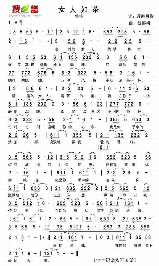 >> 女人如茶-啡啡(简谱)