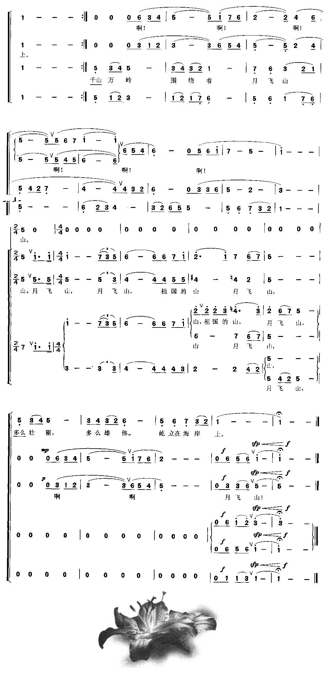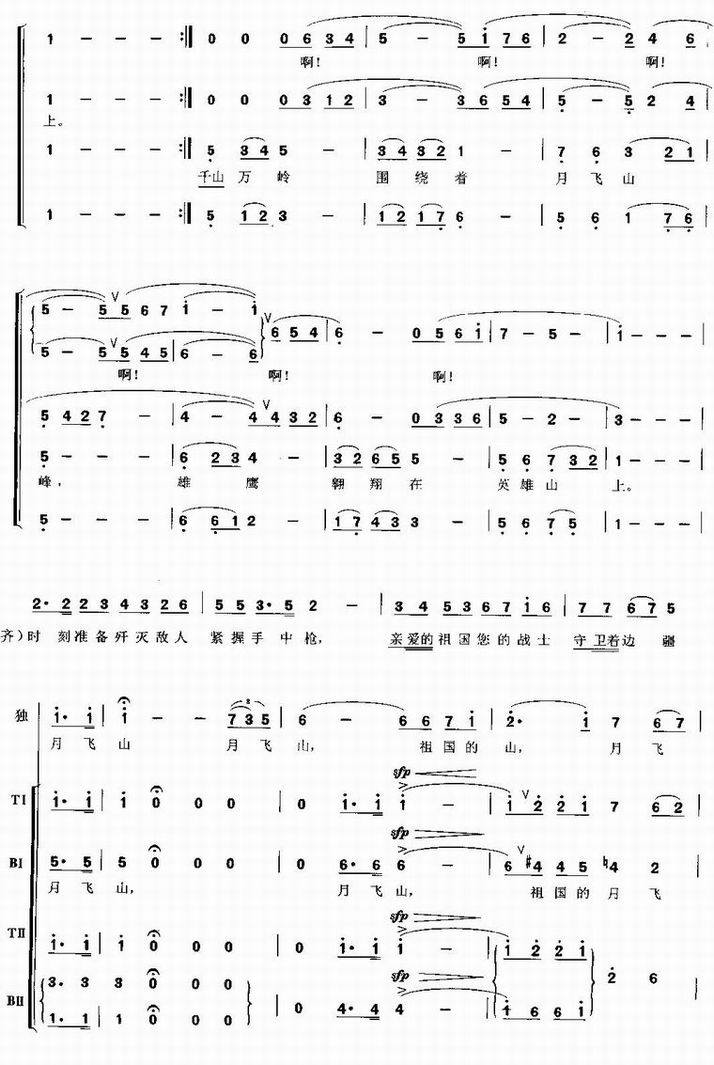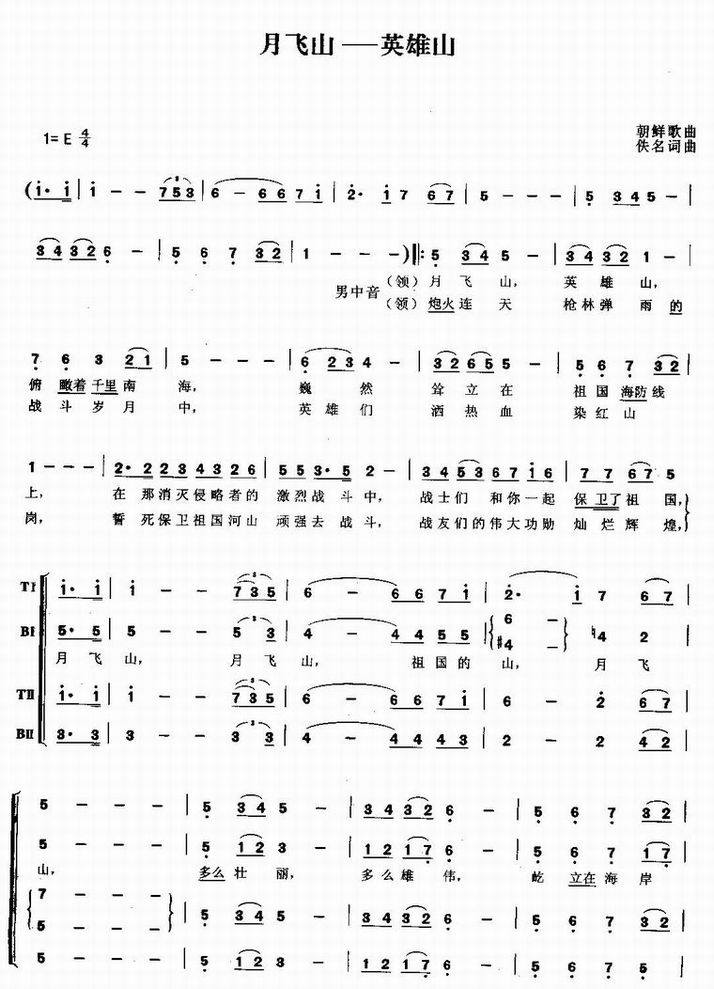 >> 月飞山英雄山-朝鲜歌曲(合唱简谱)