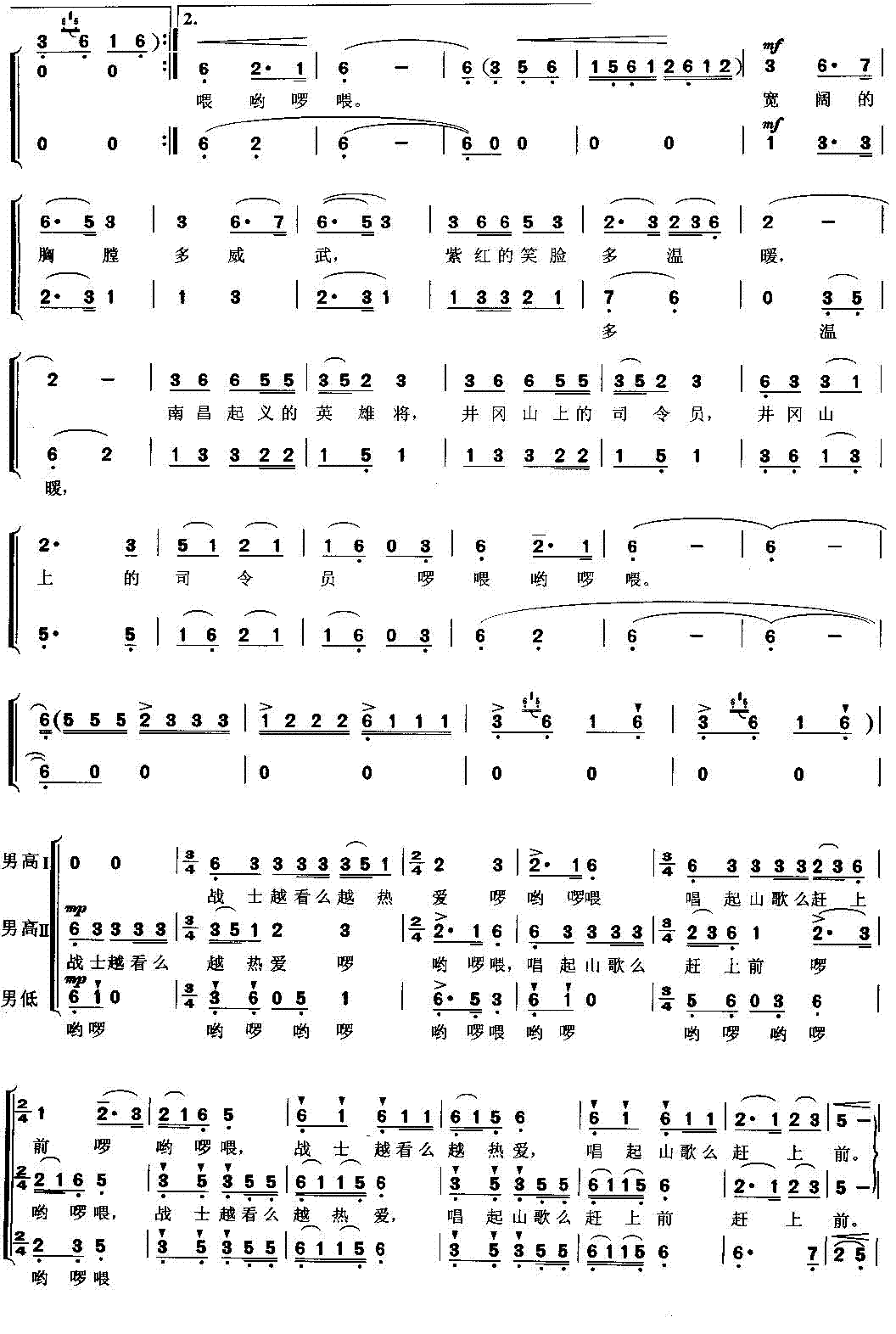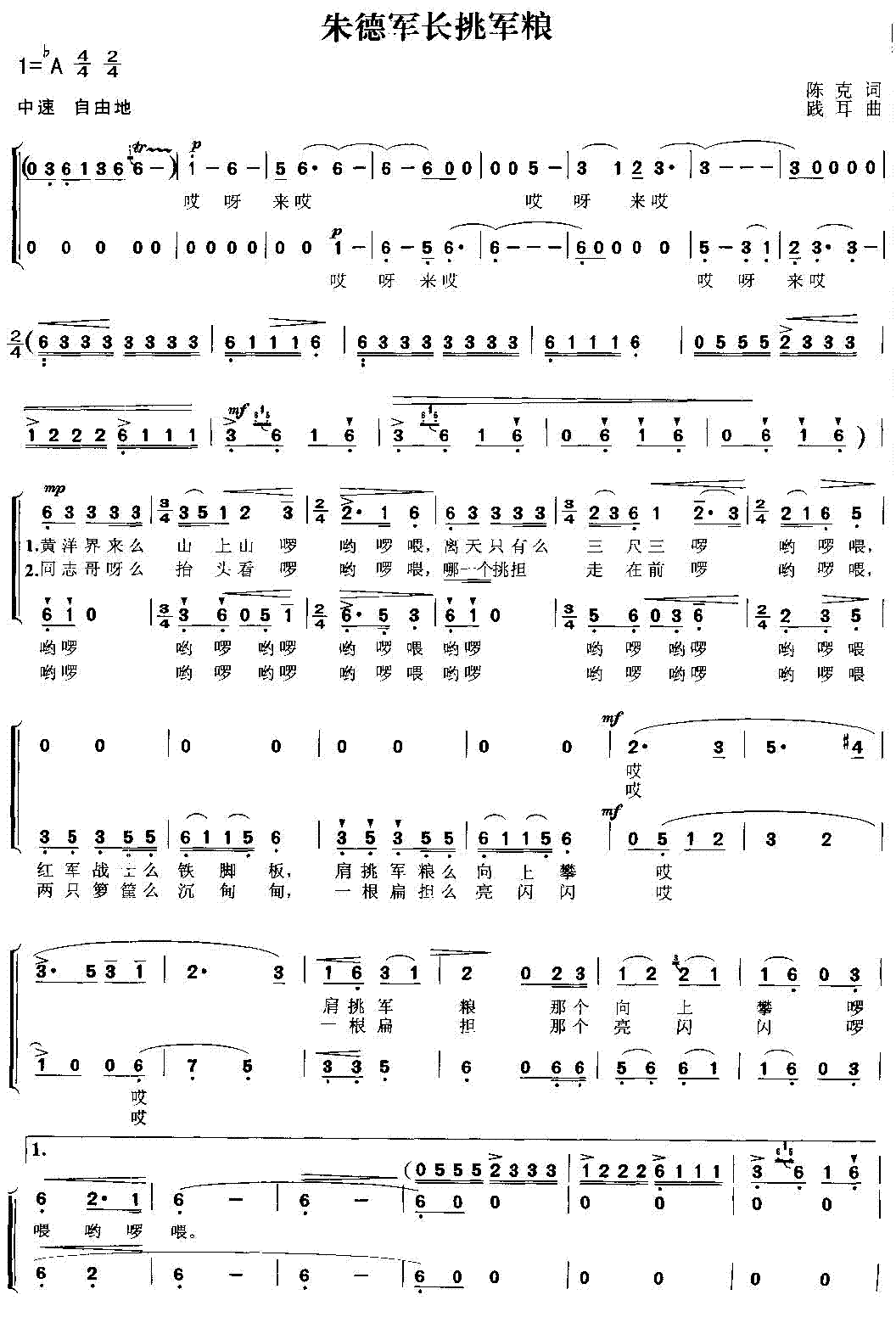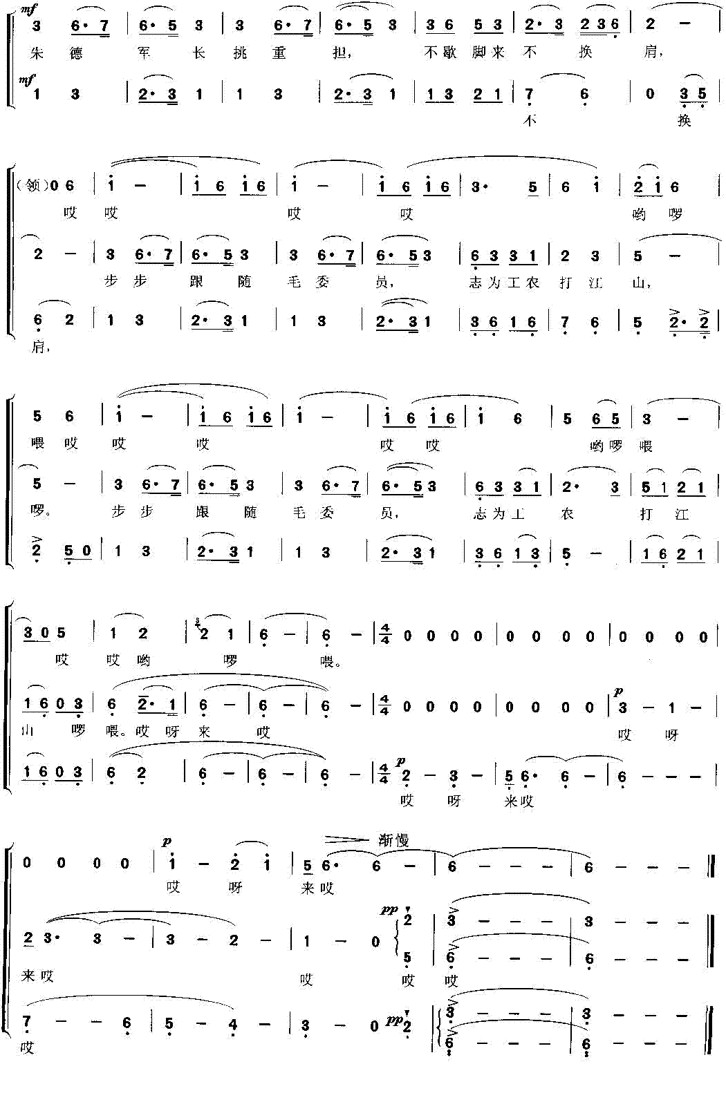 >> 朱德军长挑军粮-革命歌曲(合唱简谱)