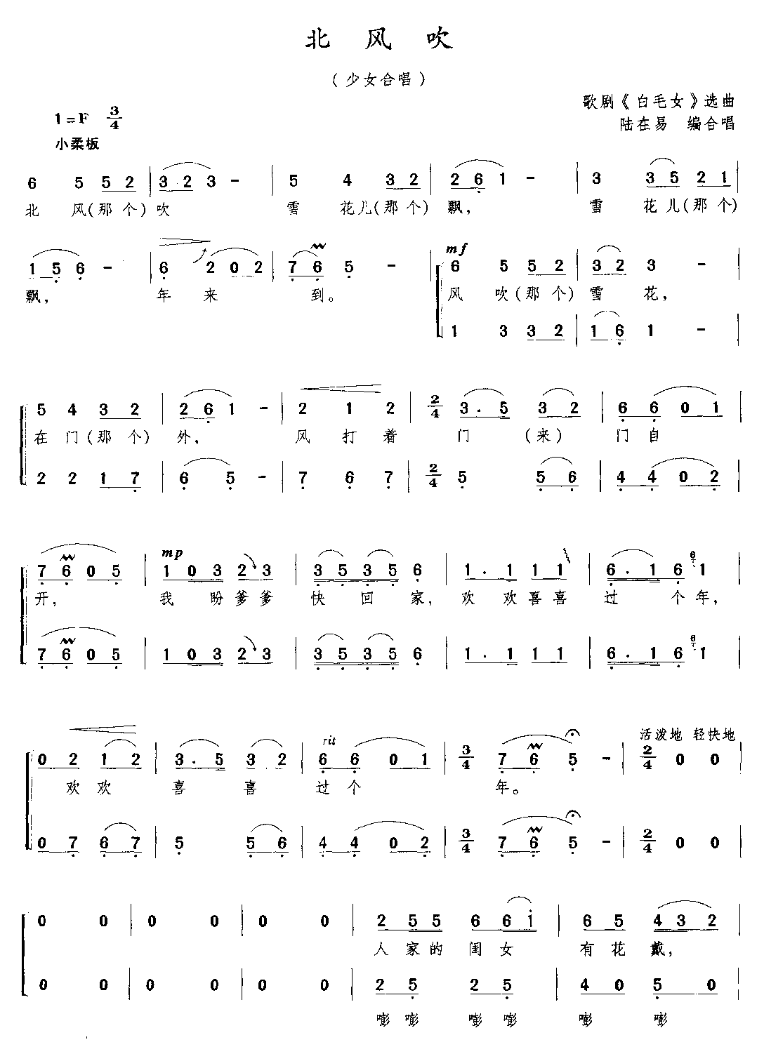 北风吹-歌剧《白毛女》选曲(钢琴谱_合唱五线谱)