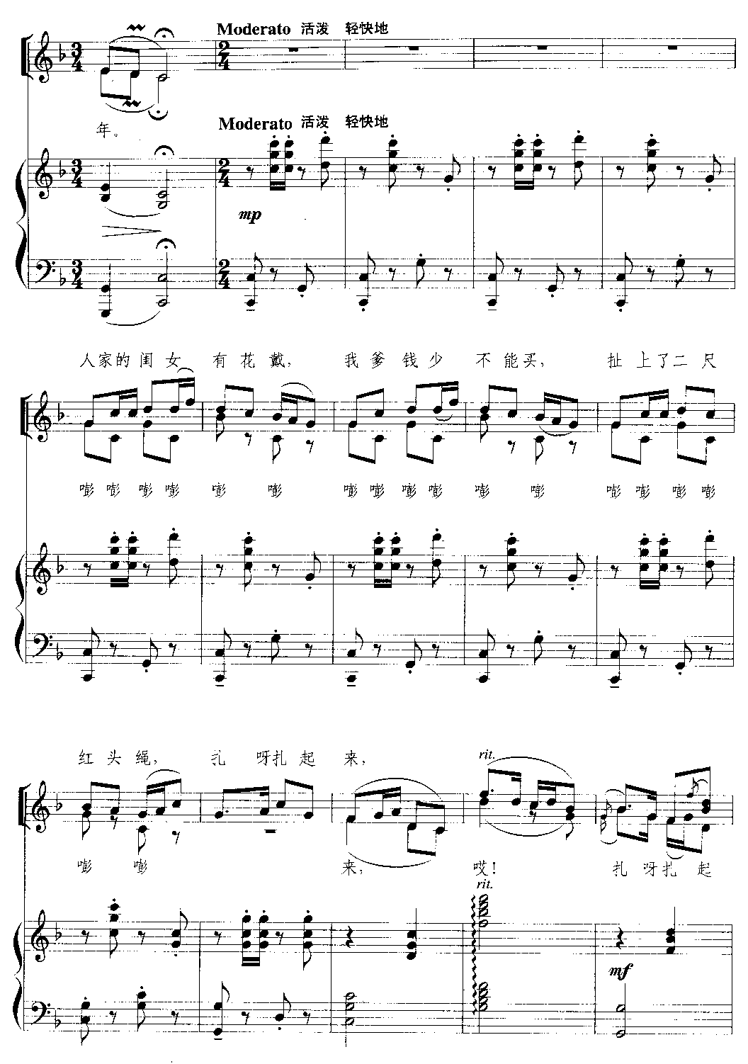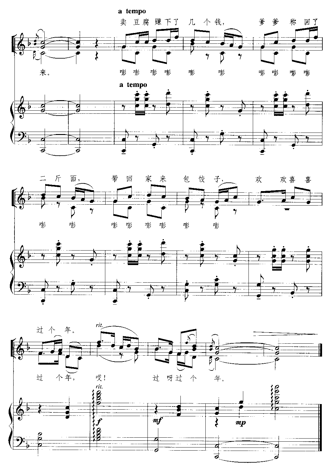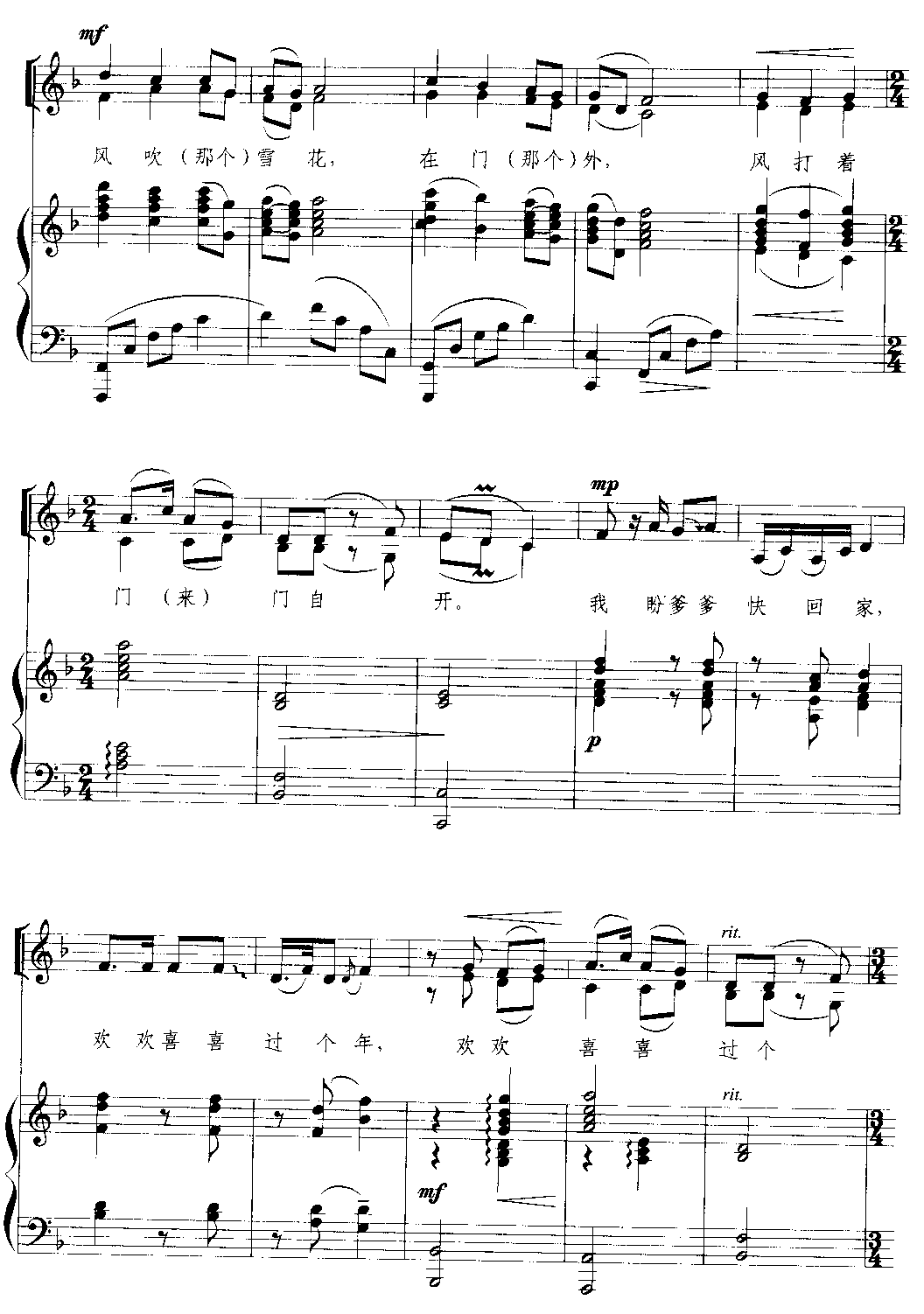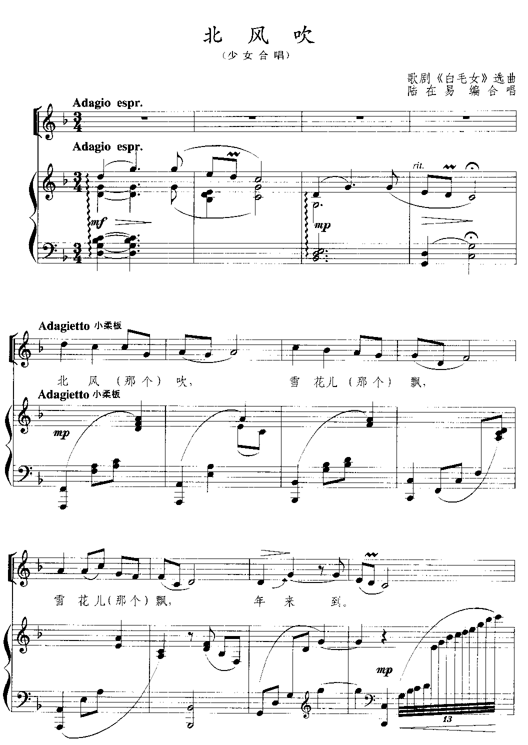 >> 北风吹-歌剧《白毛女》选曲(钢琴谱_合唱五线谱)