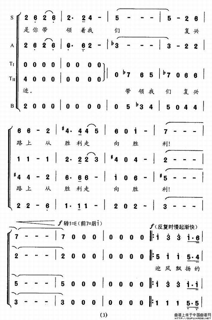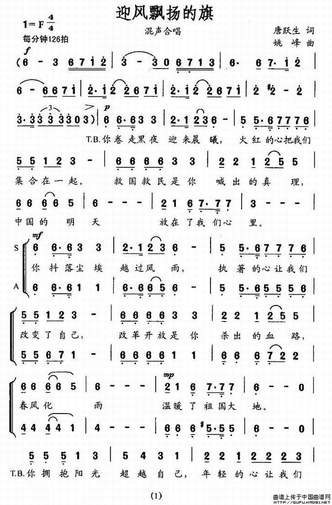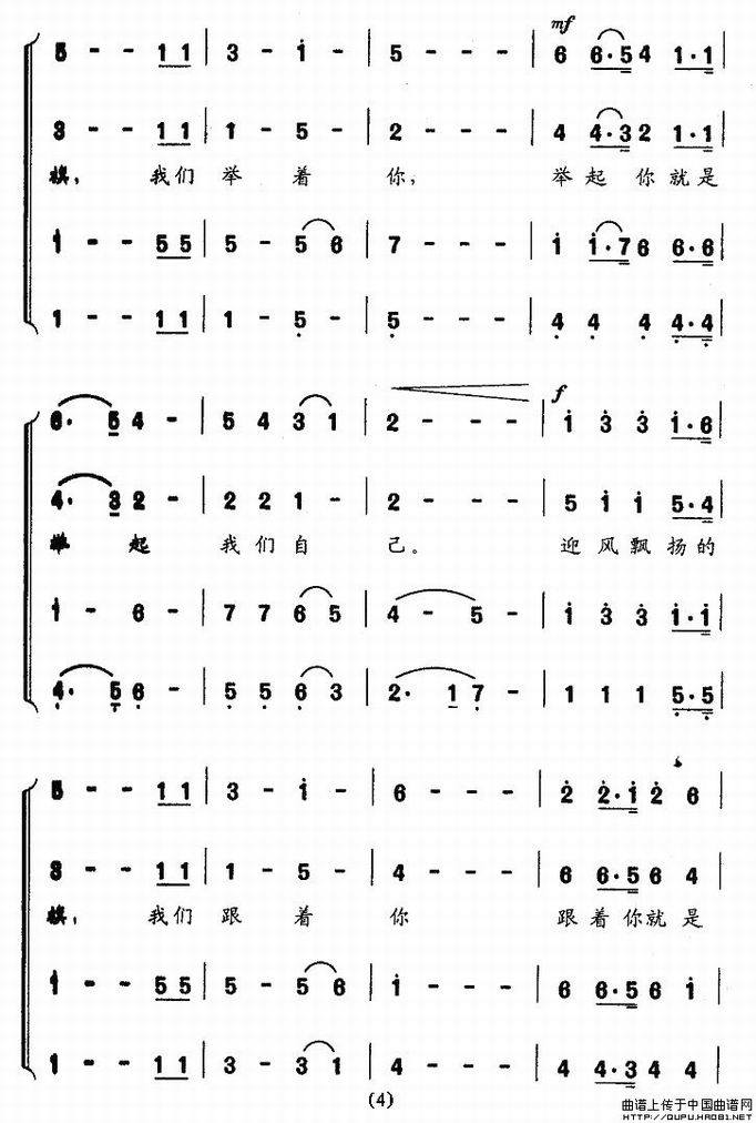 >> 迎风飘扬的旗-总政合唱团(混声合唱简谱)