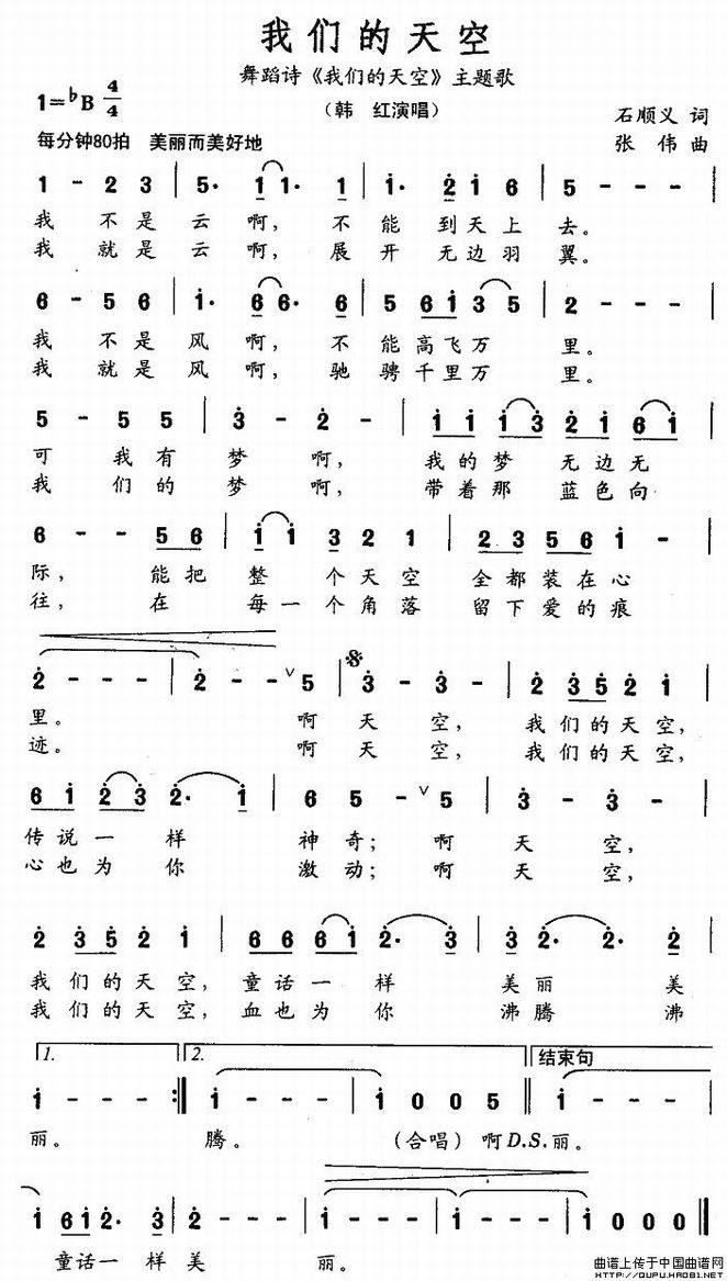 >> 我们的天空-韩红(舞蹈诗《我们的天空》主题歌简谱)