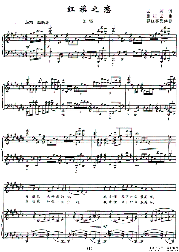 >> 红旗之恋-王莉(钢琴谱_五线谱)