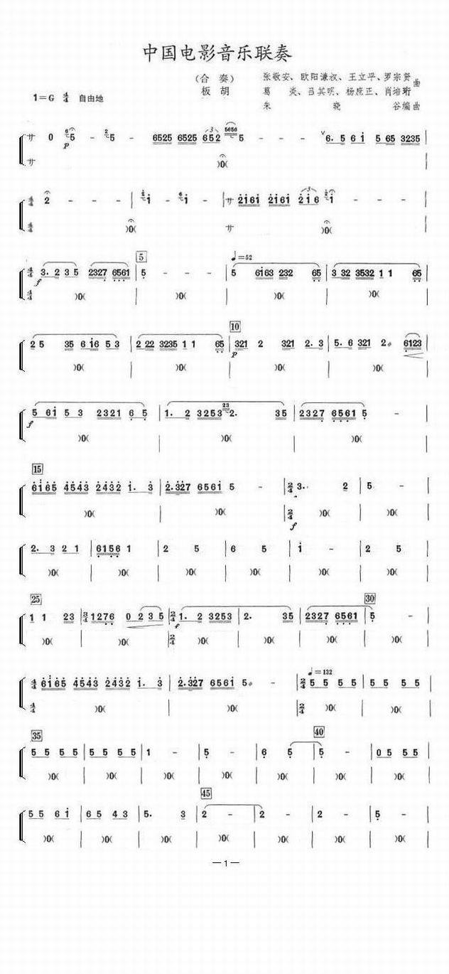 >> 中国电影音乐联奏-民乐合奏(板胡分谱)
