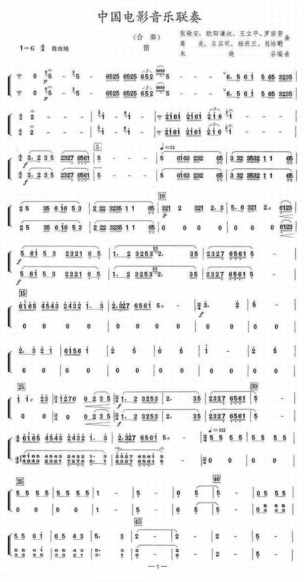 >> 中国电影音乐联奏-民乐合奏(笛子分谱)