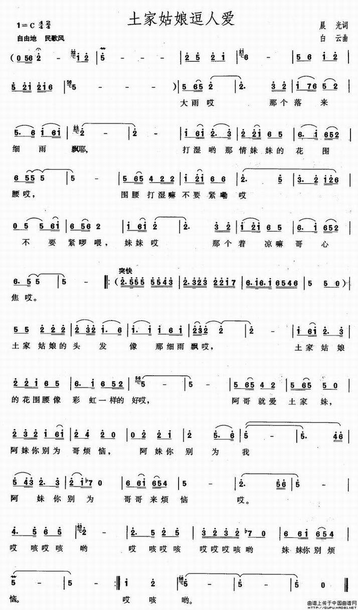 >> 土家姑娘逗人爱-晨光词 白云曲(简谱)