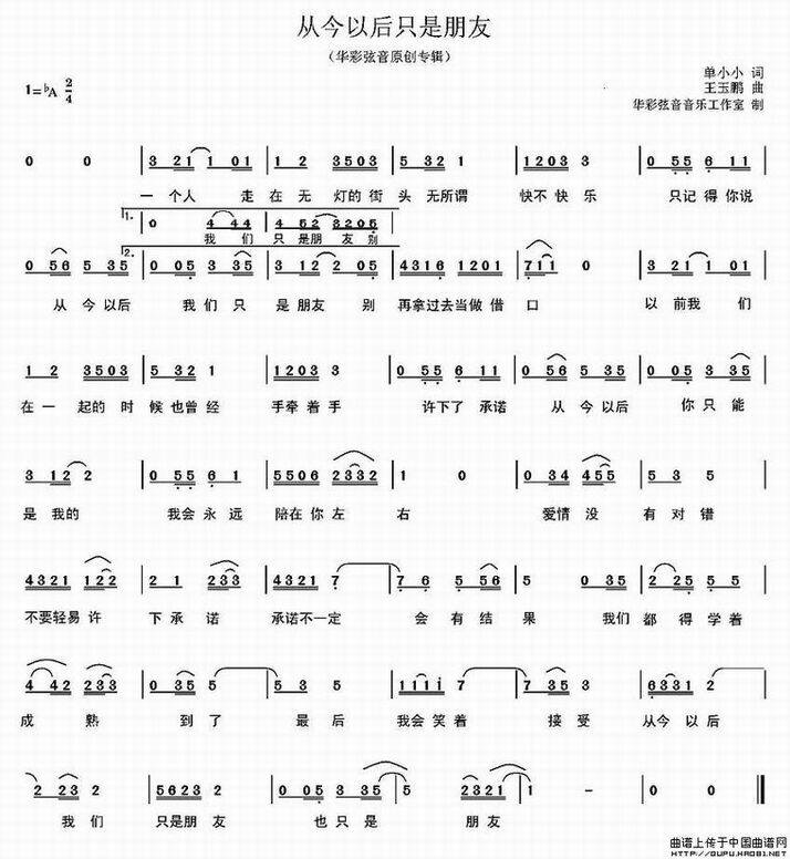 >> 从今以后只是朋友-王玉鹏(简谱)