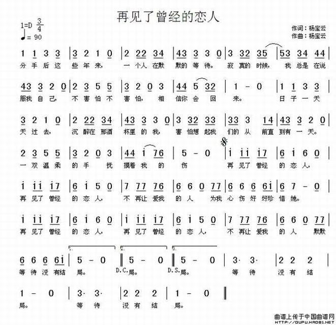 >> 再见了曾经的恋人-杨宝云词曲(简谱)