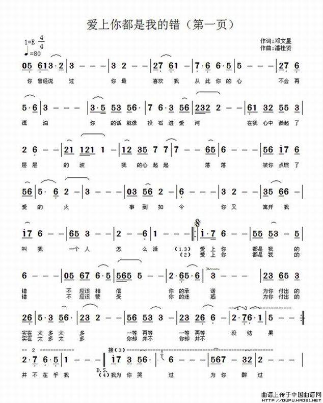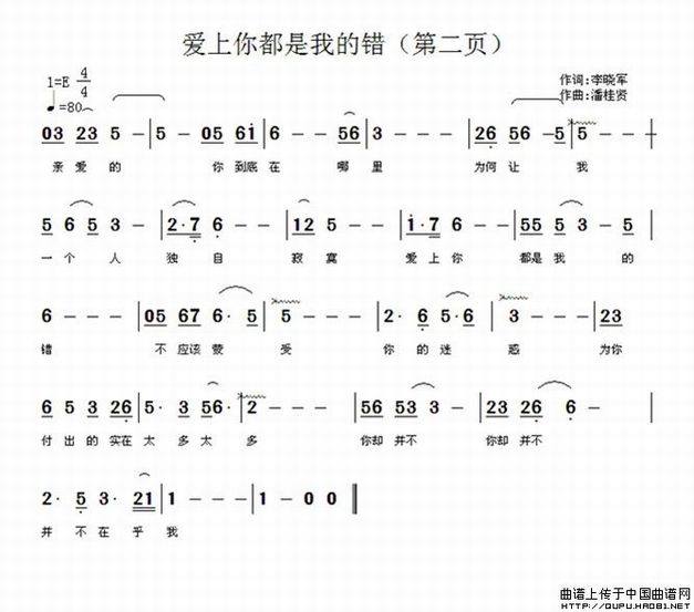 >> 爱上你都是我的错-原创歌曲(简谱)