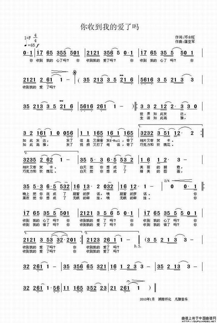 >> 你收到我的爱了吗-原创歌曲(简谱)