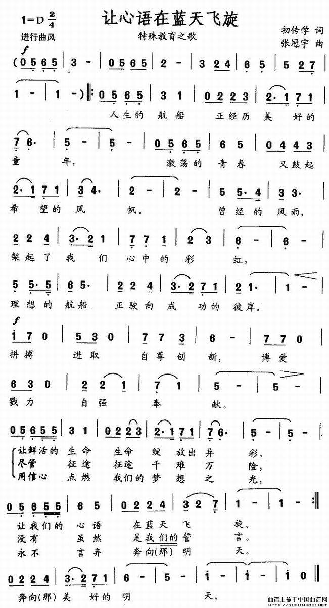>> 让心语在蓝天飞旋-特殊教育之歌(简谱)