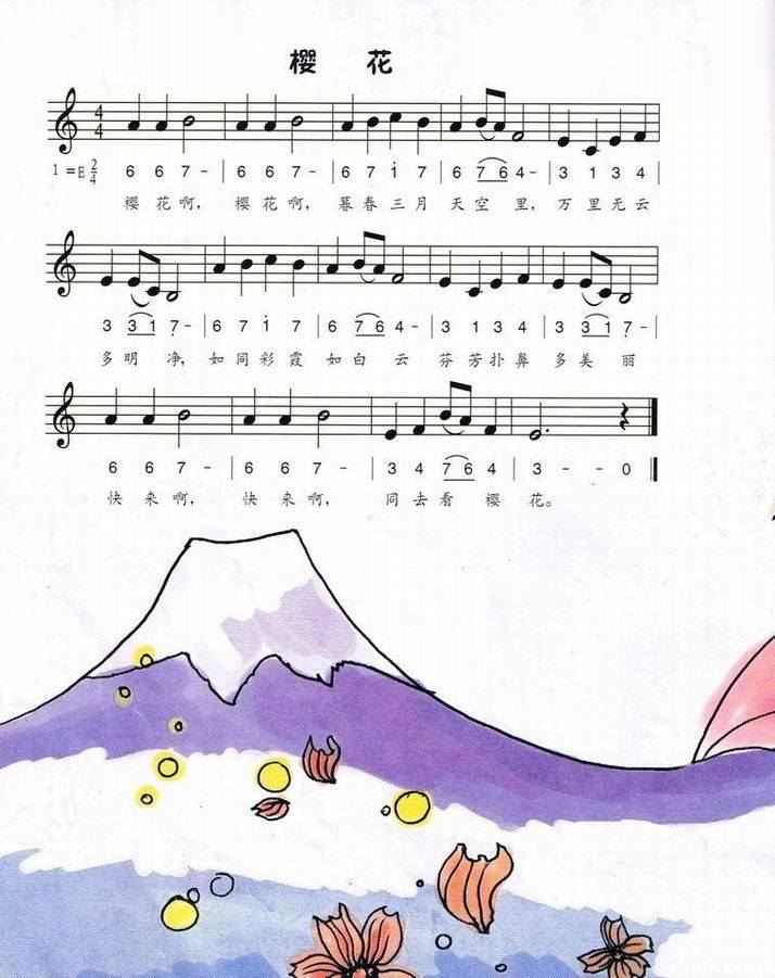 >> 樱花-少儿歌曲(简谱+线谱)